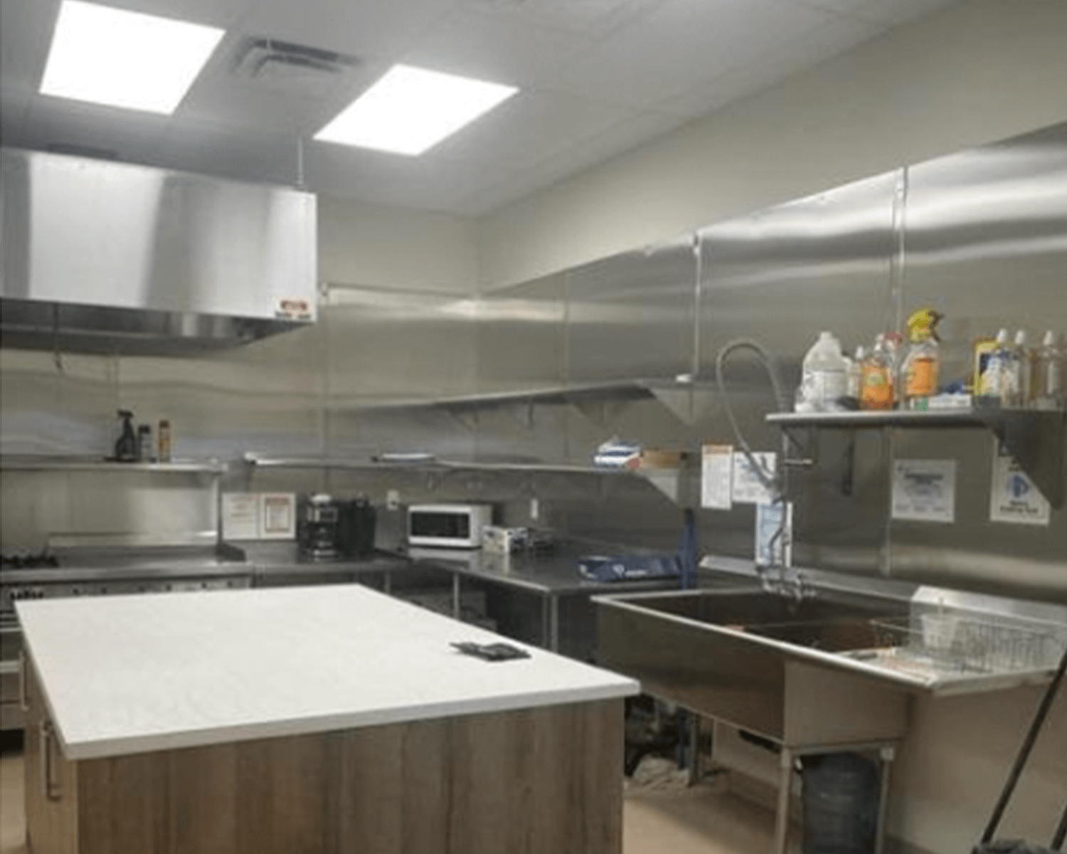 Current – Industrial Kitchen – used by the renter – cook your own food or bring your own caterer – bar – provide your own booze.